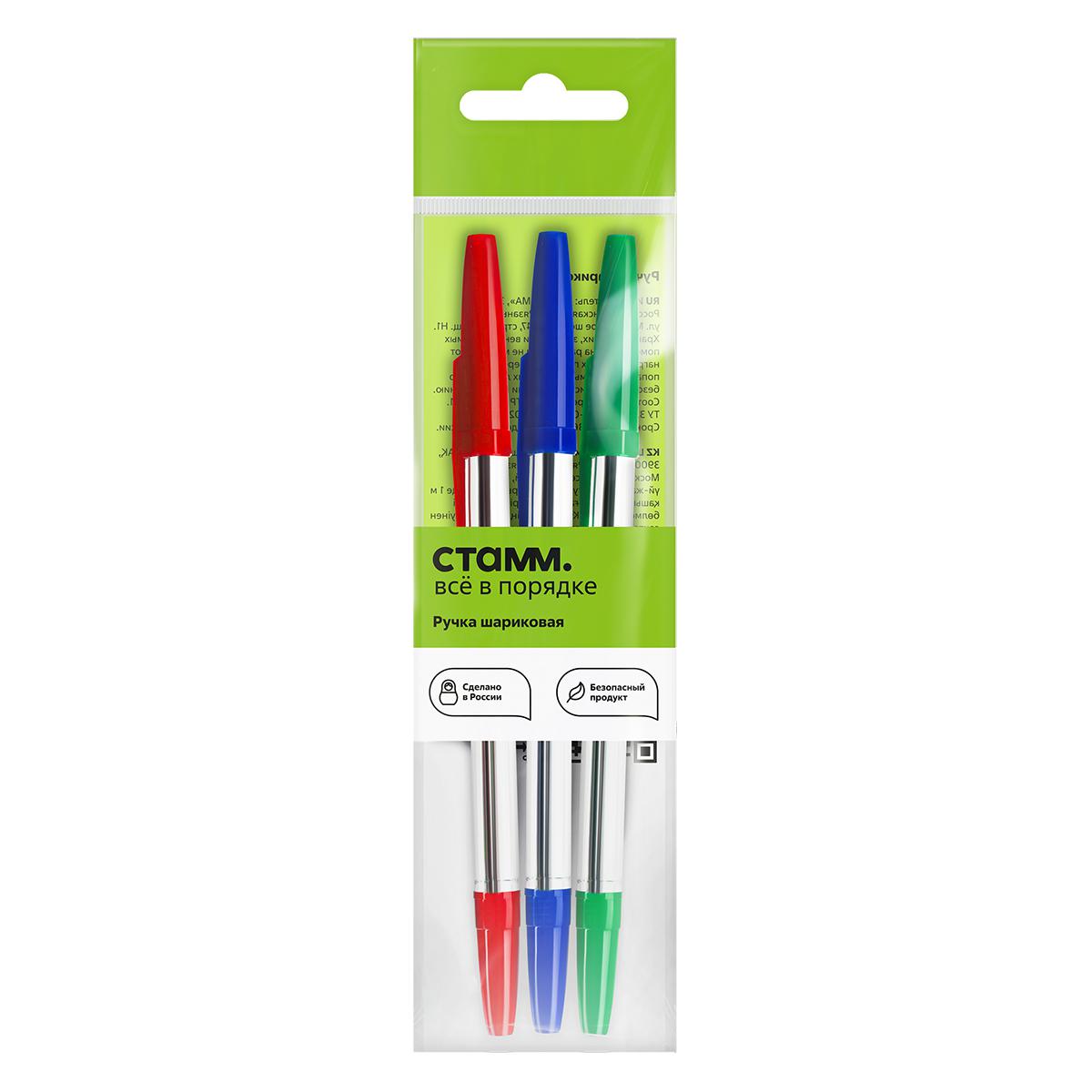 Ручки шариковые 3цв. Стамм РШ-32393-3 "Оптима" прозрачный корпус, 1,0мм 383423
