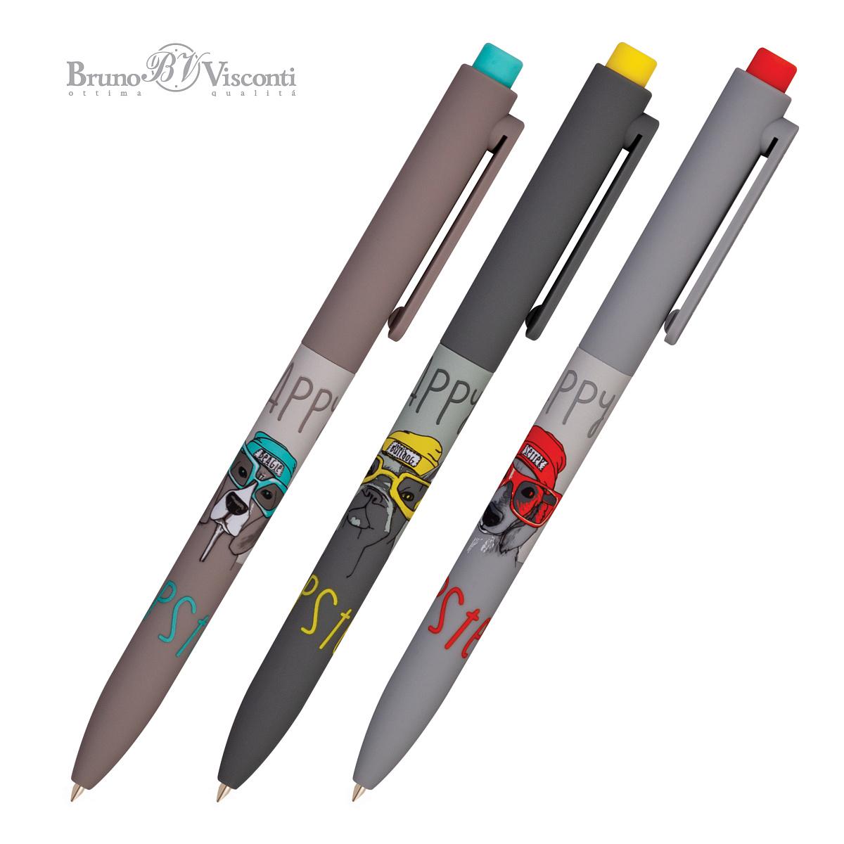 Ручка Bruno Visconti 20-0297/08 FunClick "Псы на стиле" синяя 0,7мм автомат, ассорти