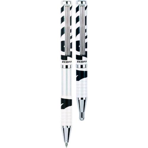 Ручка Zebra Slide Design синяя авт. шариковая телескопич., черно-белая полоса, в подар. коробке