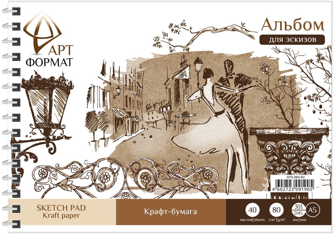 Альбом 40л. А5 АРТформат AF13-062-02 для эскизов на спирали, жестк. подложка, бумага крафт 80г/м2