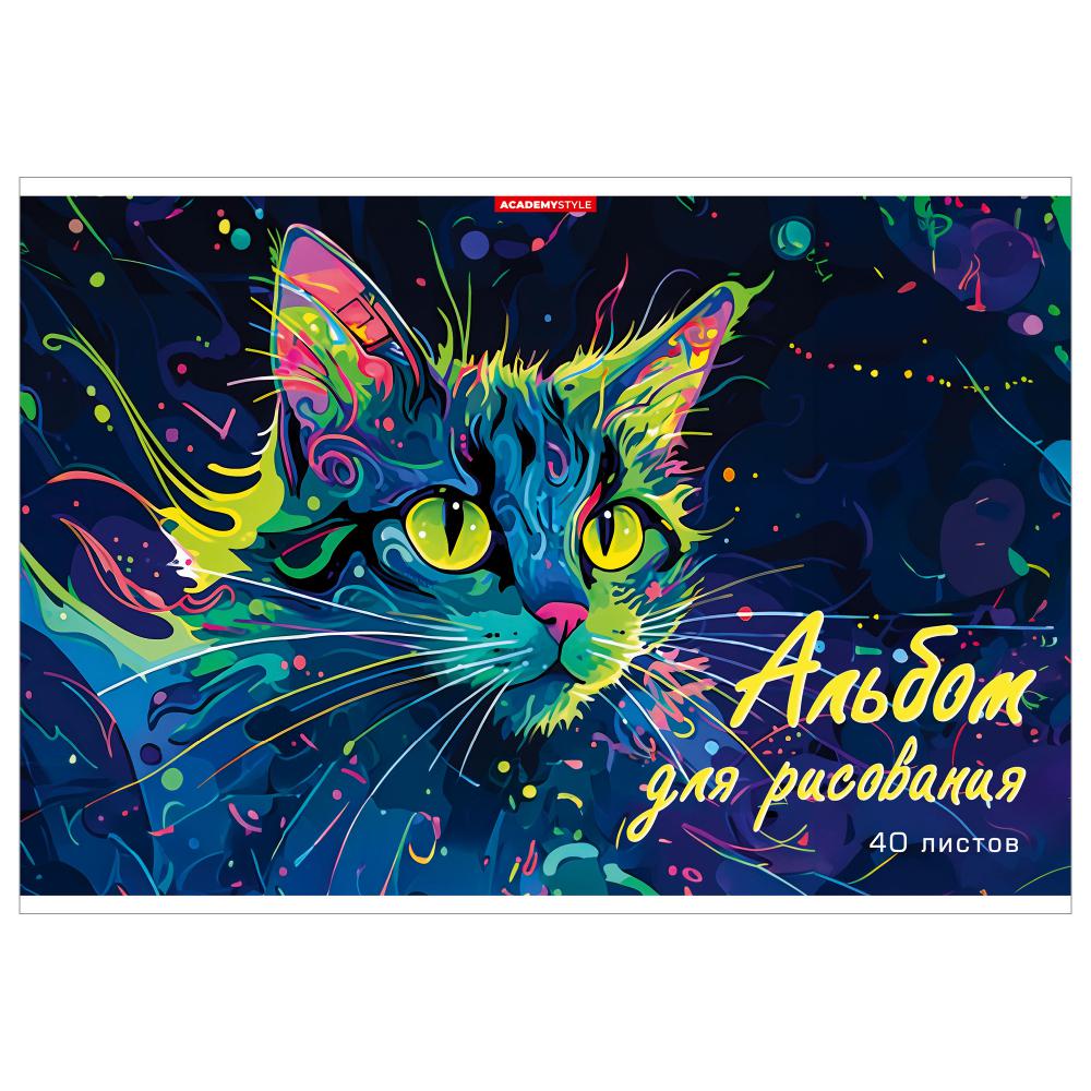 Альбом 40л. КанцБизнес 14444 "Яркий кот" скрепка