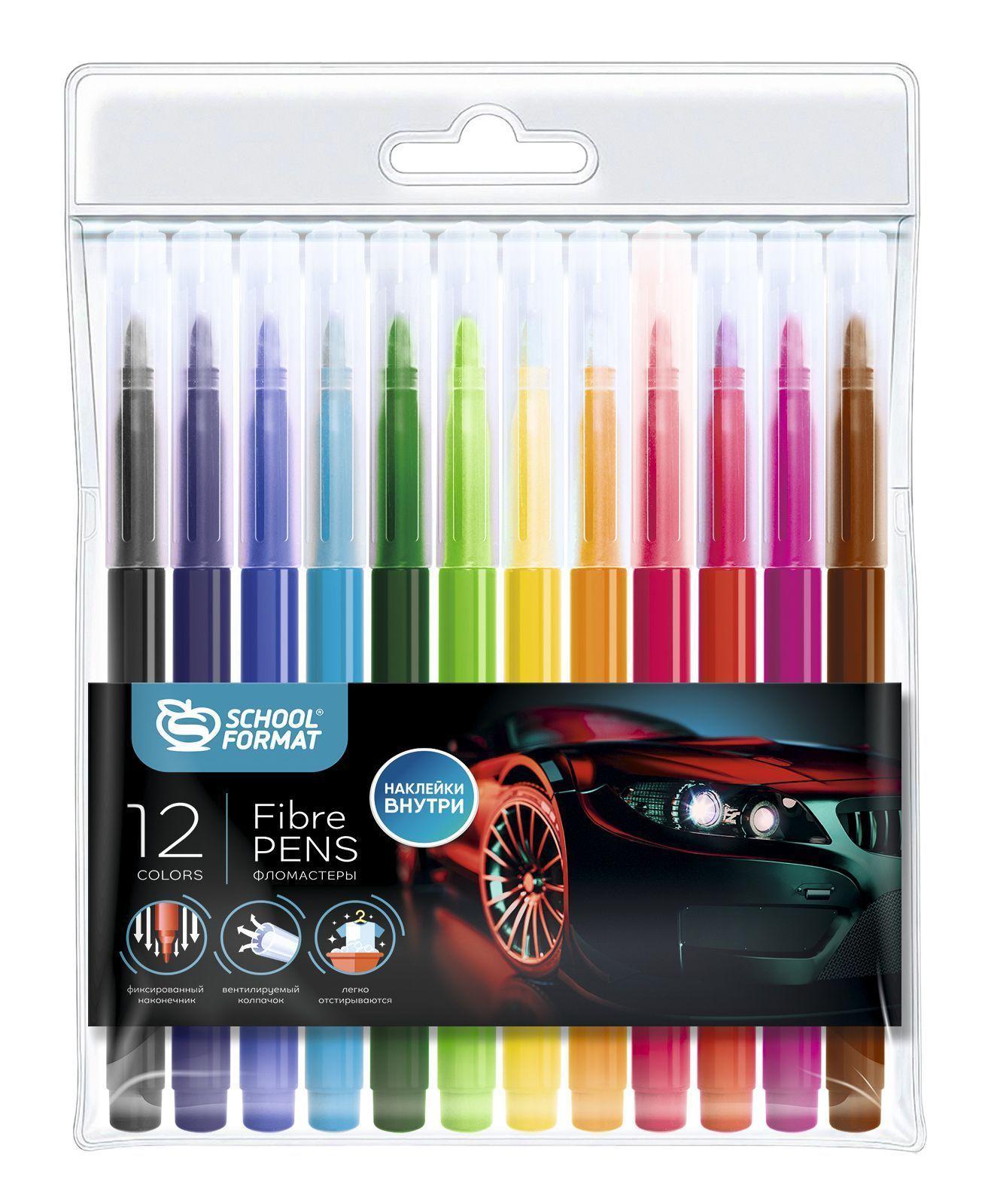 Фломастеры 12цв. Schoolformat ФЛ12-КРТ "Крутые тачки" + стикеры 223811