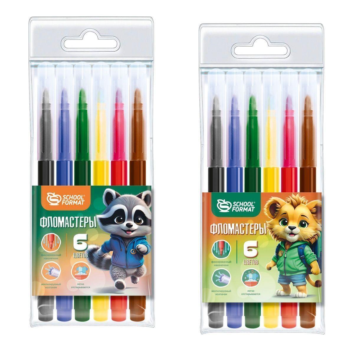 Фломастеры 6цв. Schoolformat ФЛ06-ЯЗВ "ЯРКИЕ ЗВЕРЯТА" 256788