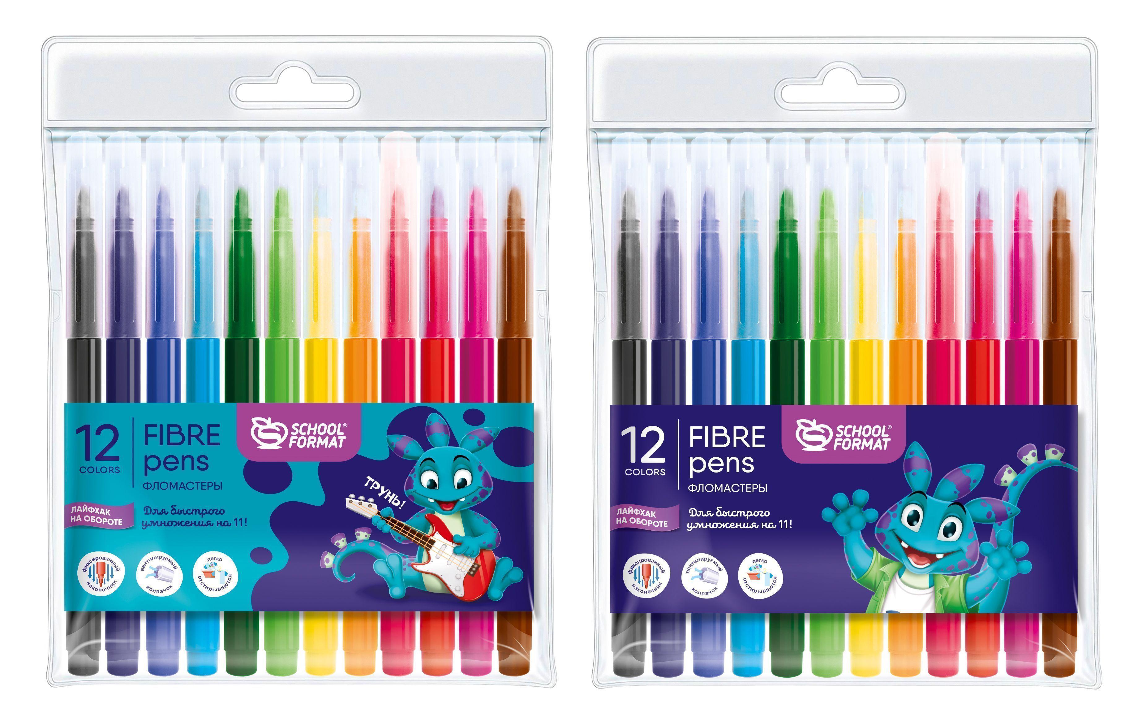 Фломастеры 12цв. Schoolformat ФЛ12-СМДН "Smart Dino" круглые, смываемые 256792