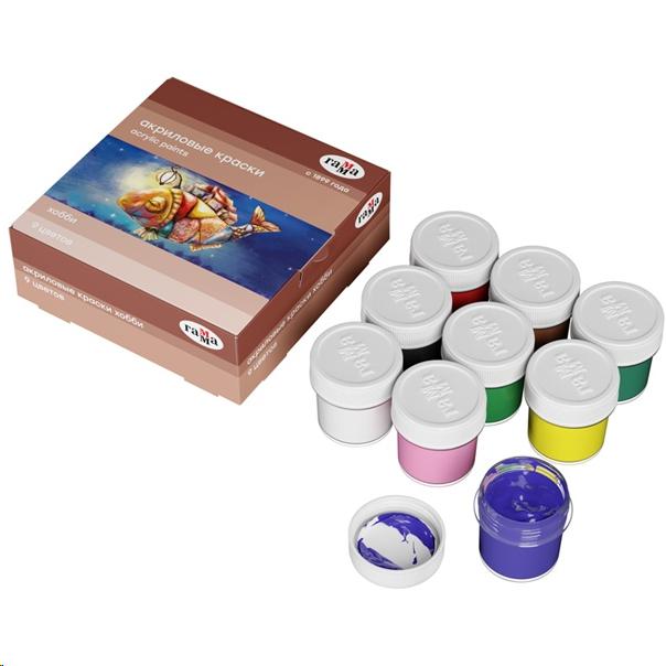 Краски акриловые декоративные 9цв. Гамма 3012197 "Хобби" 20мл 300258