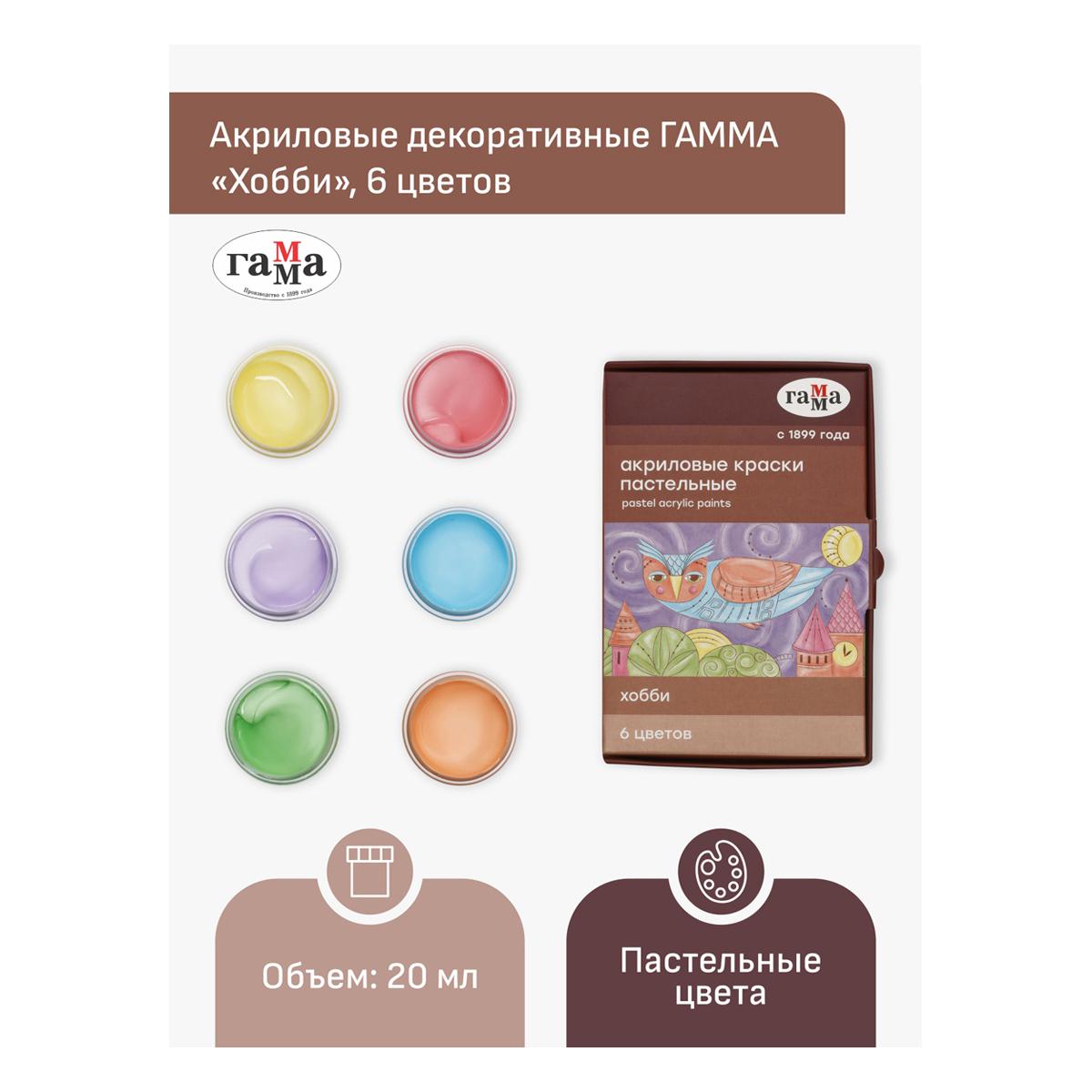 Краски акриловые 6цв. Гамма 180120228 "Хобби" пастель 20мл 323104
