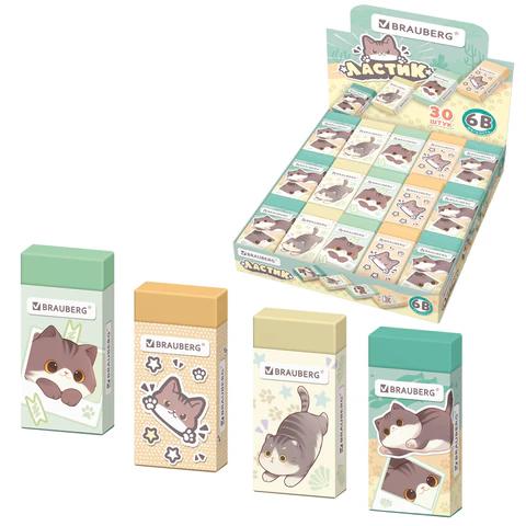 Ластик Brauberg 273227 "Милые коты" прямоугольный 50х44х10мм, ассорти
