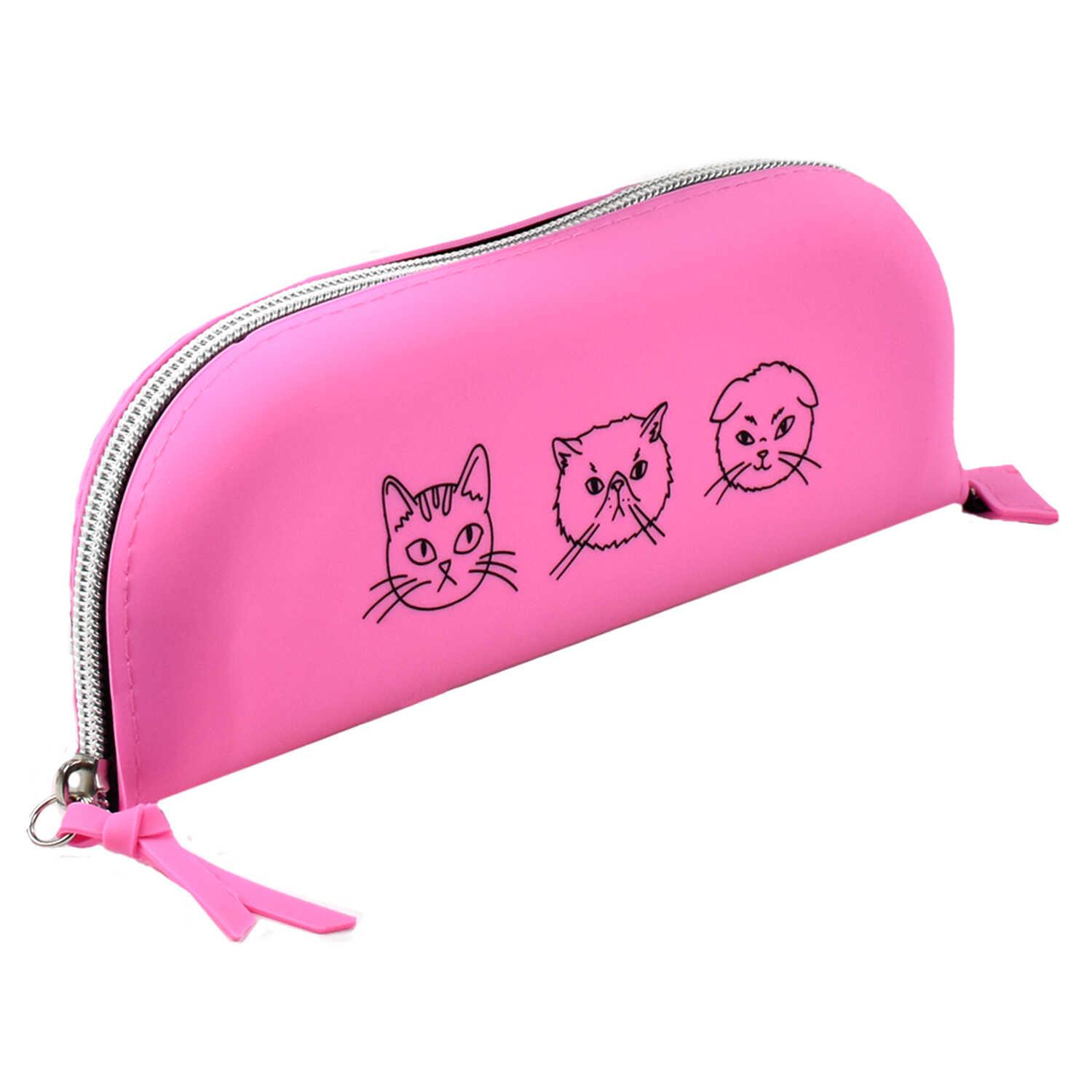 Пенал Феникс 54051 "Коты" 21*7,5*2см розовый, на молнии, силикон