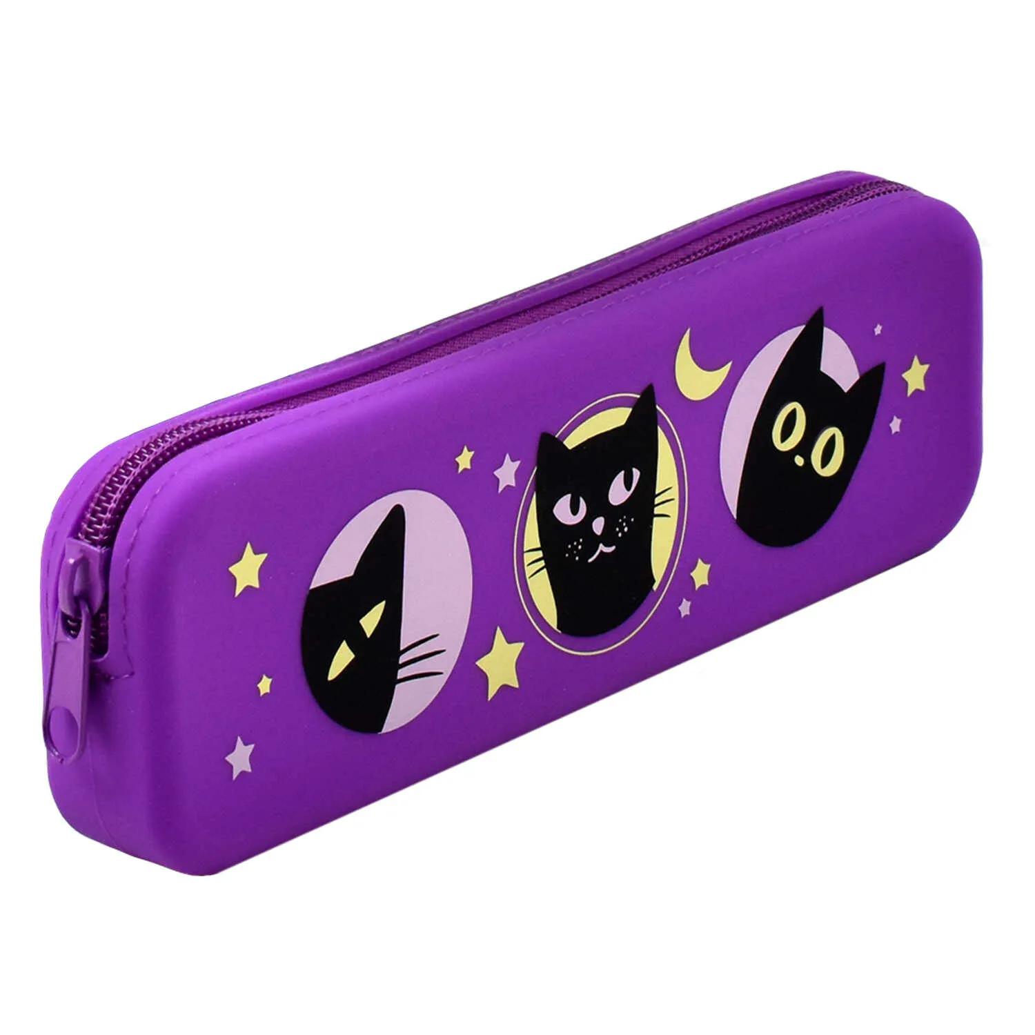 Пенал Феникс 54055 "Ночные коты" 20*6*2,5см фиолетовый, на молнии, силикон