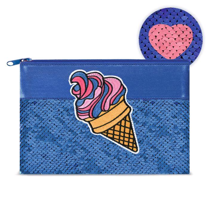 Пенал Феникс 48922 "Рожок" синий 22*16см, кожзам + пайетки на молнии