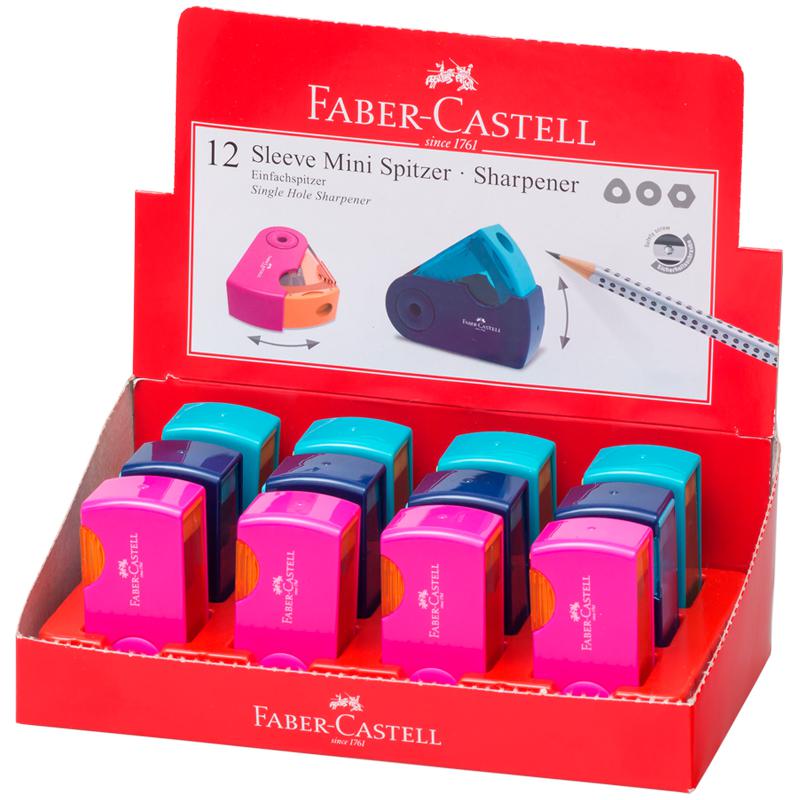 Точилка Faber-Castell 182714 SLEEVE-мини 1отв, контейнер, розовая/оранж бирюз 306093