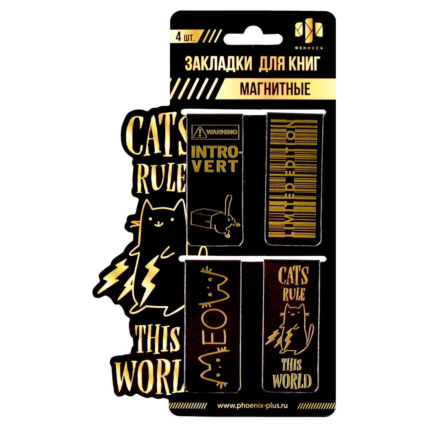 Закладки для книг магнитные Феникс 67831 "Коты правят миром" /4шт/