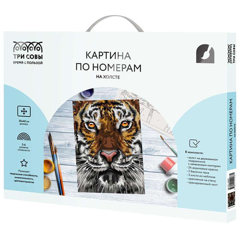 Набор для рисования ТРИ СОВЫ KX_44087 "Картина по номерам" 30х40см "Тигриный взгляд" краски, кисти 335043