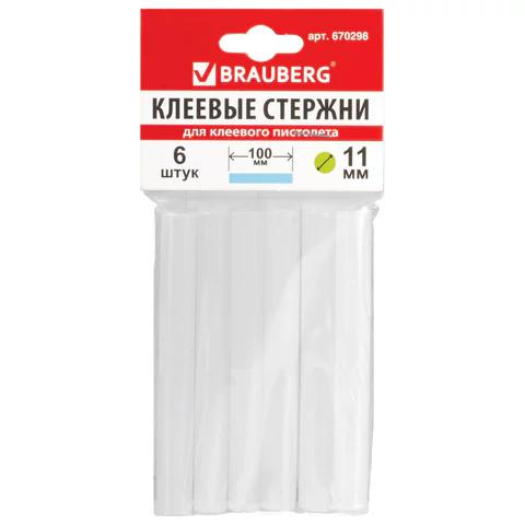 Стержни клеевые Brauberg 670298 d-11мм, длина 100мм, набор 6шт, белые
